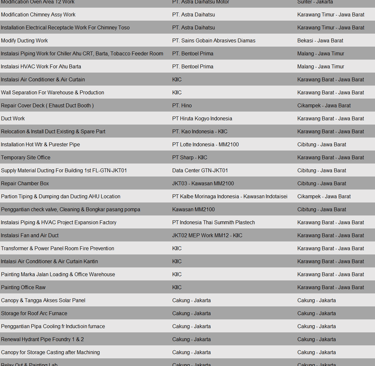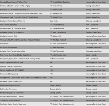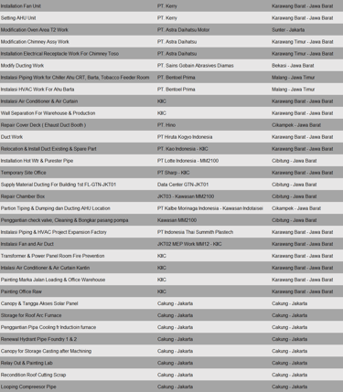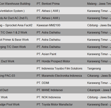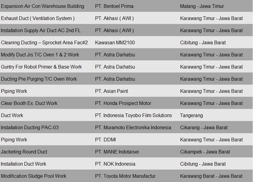 Pekerjaan project ini meliputi pembuatan dan instalasi ducting plant baru di PT. Kewpie Indonesia